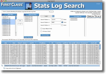 FirstClass Stats Log Search |