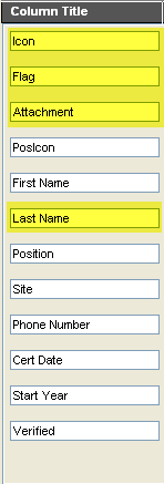 Icon If you want to replace the name that you entered in the first column with an Icon to represent the column name when displayed in the list view, select one here. To find small icons, hold the <Control> key down on your keyboard (<Option> key on a Mac) while clicking on the icon field and you will get the full range of icons, including the small ones. If