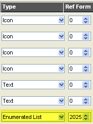 Ref Form The only thing you have to worry about in this column, is if you chose Enumerated List in the Type column. If this is the case, you must enter the custom form's FormID in this column. |