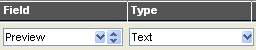 Type Here you select the Type of field that the field is. This means, what kind of item is displayed? Icon, text, number, date etc. For the most part, this should be self explanatory. What you should note